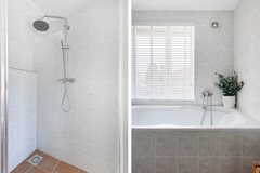 De badkamer is compleet ingericht en voorzien van een royale douche, wastafel, ligbad en een toilet. Een comfortabele ruimte waar de dag ontspannen begint en eindigt.