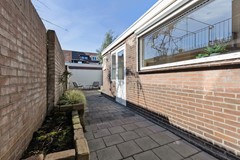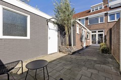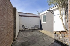 De tuin beschikt over een stenen berging, welke is te bereiken via de poort waardoor je makkelijk met de fiets achterom kan. De berging zorgt voor extra opslagruimte en er is een buitenkraantje — praktisch voor tuinonderhoud of een zomerse schoonmaak.