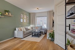 De living is licht, luchtig en ruim. De warme houten vloer vormt een prachtig contrast met de strakke wanden en het plafond. Dit is zo’n woonkamer waar de tijd even lijkt stil te staan: lange avonden aan de grote eettafel, filmavonden op de bank, spelletjes met familie of vrienden… De ruimte beweegt moeiteloos met je leven mee. En de trapkast? Handig verstopt, ideaal voor al die spulletjes waarvan je nooit weet waar ze moeten.