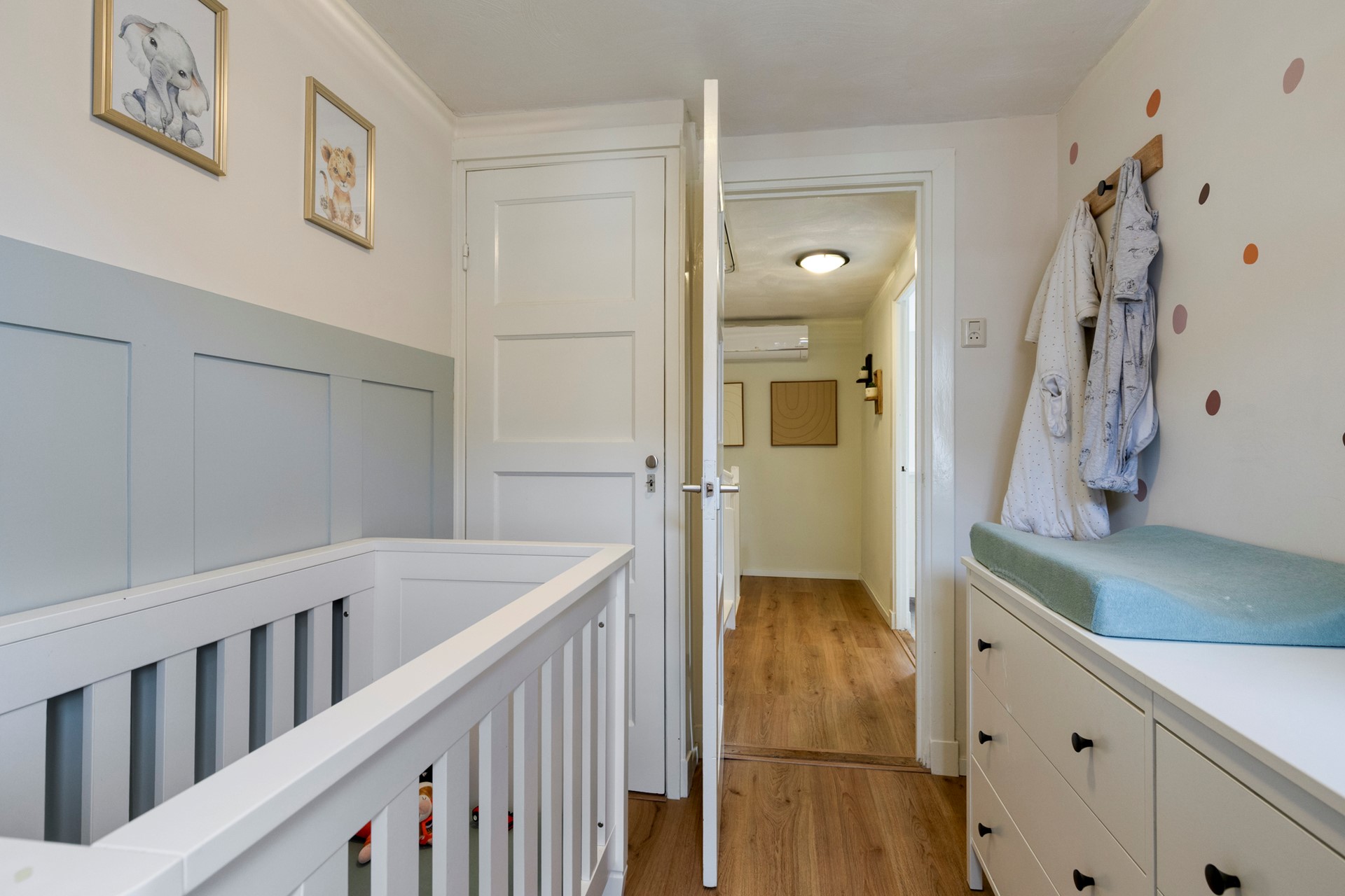 Op de eerste verdieping wachten drie royale slaapkamers. De "master bedroom" aan de voorzijde is licht en comfortabel, maar ook de slaapkamer achter biedt alles om je tot master bedroom te kronen. De derde slaapkamer is nu ingericht als kinderkamer — compleet met een handige inbouwkast. En met een airco op deze verdieping blijft het ’s zomers heerlijk koel.