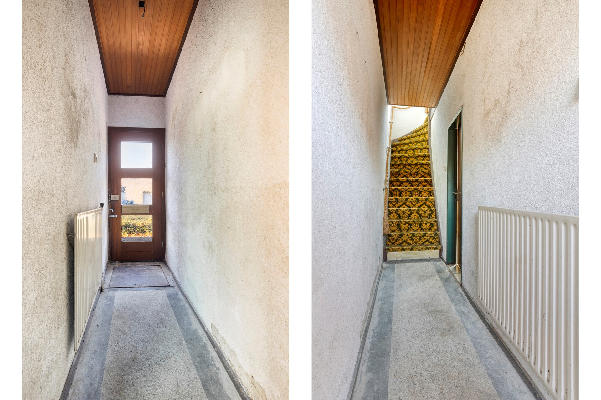 De ruime hal verwelkomt je met verrassend veel daglicht dankzij het glas in de voordeur. Het is een binnenkomst die al meteen een prettige eerste indruk geeft. Vanuit hier bereik je de woonkamer, én de trap naar boven. Een begin dat belooft dat licht en ruimte je in dit huis zullen blijven volgen.