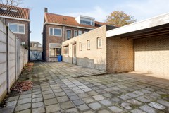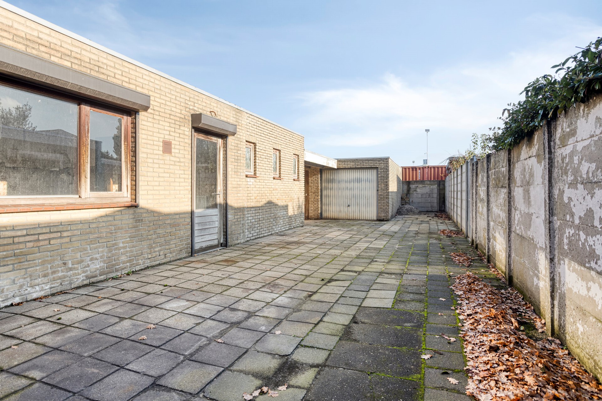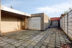 De achtertuin ligt op het oosten, waardoor je ’s ochtends geniet van de eerste zonnestralen. De tuin is volledig naar eigen smaak in te richten. Aan de woning grenst een praktische overkapping richting de garage — een fijne overgang tussen binnen en buiten. Via de tuin bereik je zowel de garage als de extra berging.