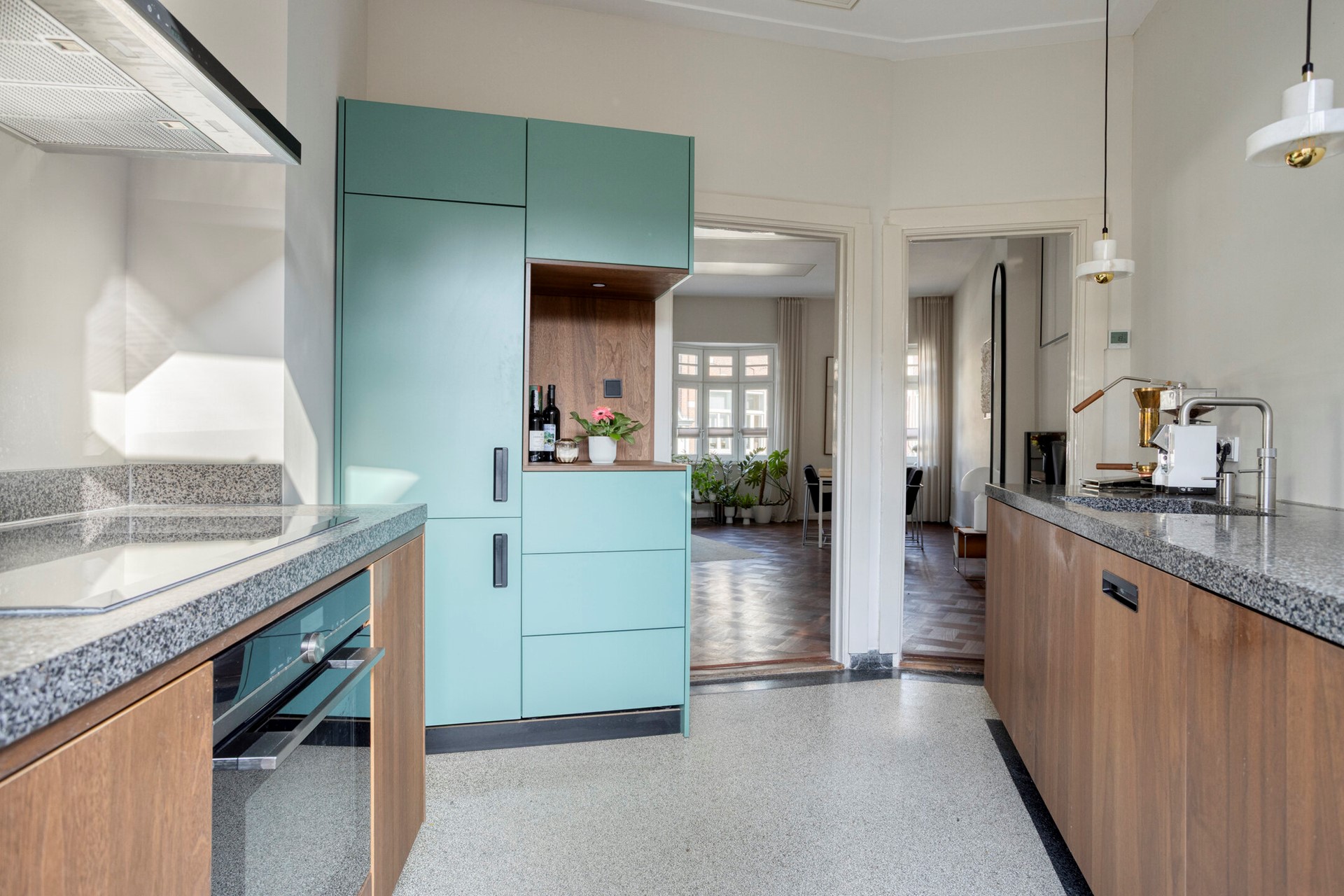 De in 2021 geplaatste keuken is een perfecte balans tussen landelijk en modern. Met hoogwaardige afwerking en praktische indeling is dit een plek waar koken en samenzijn vanzelf samenkomen. De aangrenzende buitenruimte maakt het geheel compleet: binnen en buiten vloeien hier naadloos in elkaar over.
