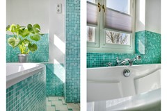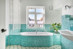 Op de tweede verdieping vind je een royale slaapkamer met een walk-in closet — een plek waar luxe en comfort samenkomen. De verdieping wordt gekenmerkt door hoge plafonds, sfeervolle paneeldeuren met glas-in-lood en prachtige raampartijen. De badkamer is modern uitgevoerd en voorzien van een ligbad, ruime douche en stijlvolle details zoals mozaïek en stucwerk. Daarnaast is er een separaat toilet aanwezig.