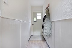 Stap binnen en laat het zonlicht via de vensters in de voordeur uw entree verlichten. Hier voelt u direct de uitnodigende sfeer die deze woning zo uniek maakt. De trap naar de eerste verdieping en de toegang tot de royale woonkamer nodigen uit tot ontdekken en ontspannen.