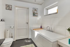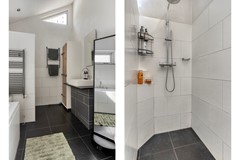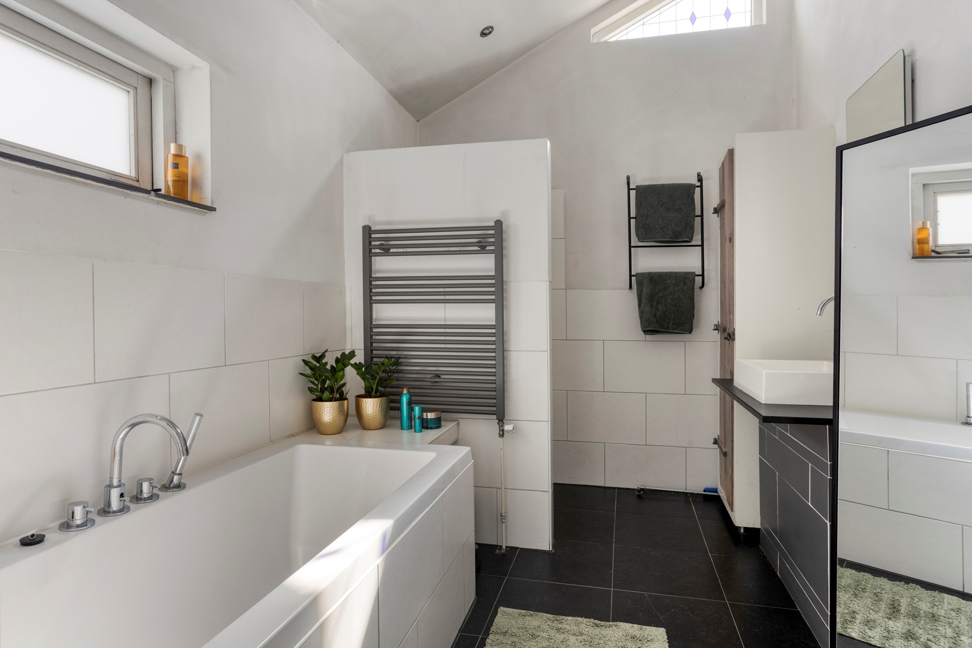 De woning straalt warmte uit, niet alleen door de houten vloeren en het licht, maar ook door de slimme indeling en praktische ruimtes. In de bijkeuken vind je de aansluitingen voor de wasmachine/droger en je hebt er toegang tot de badkamer. De grote badkamer met ligbad, inloopdouche, wastafelmeubel en vloerverwarming maakt van je dagelijkse routine een klein verwenmoment.