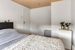 De trap omhoog leidt naar een lichte overloop, waar de serene sfeer van beneden zich voortzet. Op deze verdieping bevinden zich drie fijne slaapkamers, elk met een eigen karakter. De master bedroom aan de voorzijde is royaal van formaat, met ruimte voor een groot bed. Hier begint elke ochtend rustig, met het zachte licht dat door de ramen valt.