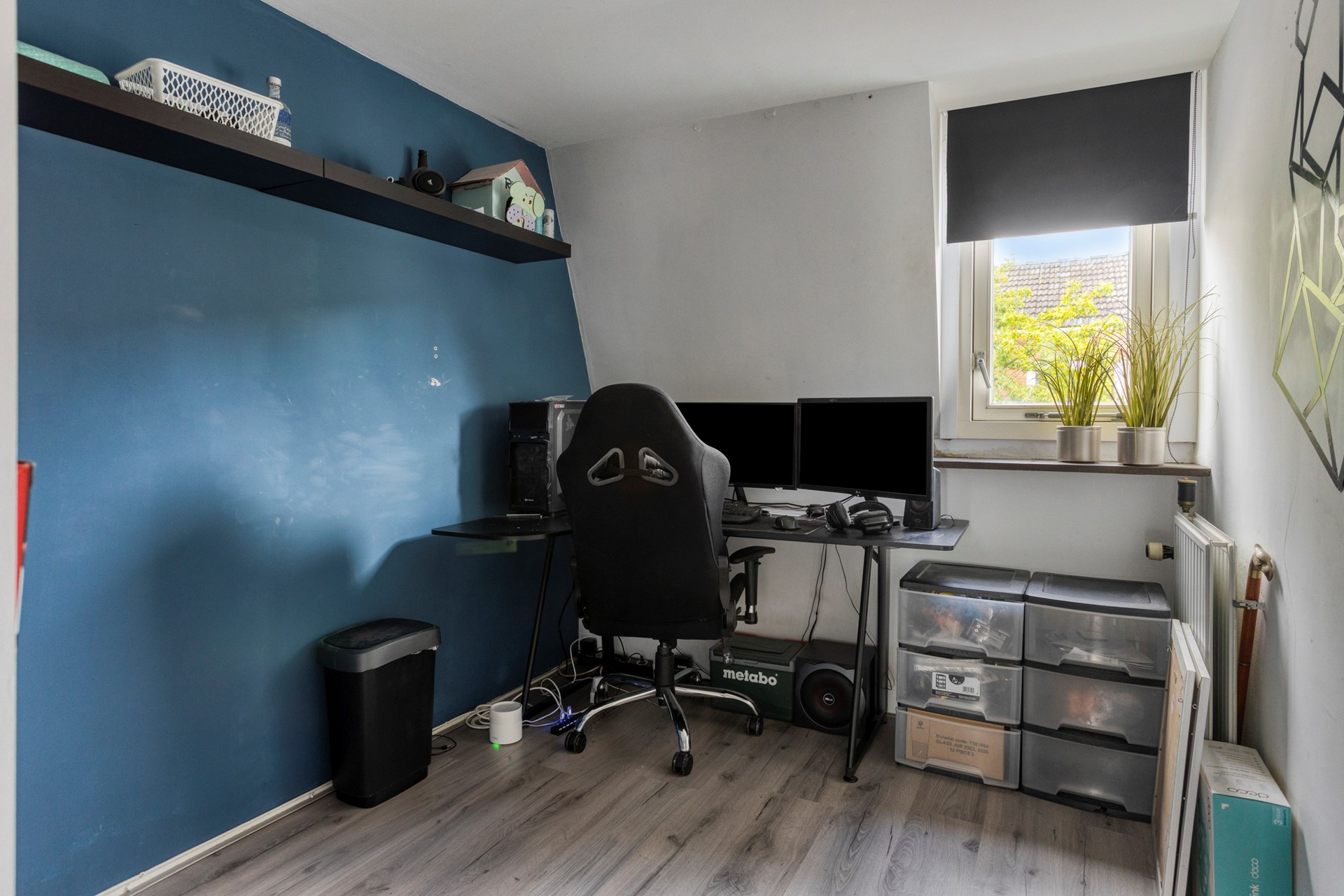 De tweede slaapkamer aan de voorzijde is iets compacter, maar perfect als kinderkamer, logeerkamer of inloopkast. De derde slaapkamer aan de achterzijde kijkt uit over de tuin en straalt rust uit — een heerlijke plek voor een thuiskantoor of hobbyruimte. Op de overloop vind je bovendien een aparte toiletruimte met modern hangend closet, en een extra wastafel — praktisch en netjes weggewerkt.
