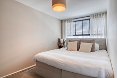 Op de eerste verdieping vind je drie slaapkamers. Eén daarvan is ingericht als praktische walk-in closet. De lichte houtlook laminaatvloer en de strak afgewerkte wanden geven de verdieping een frisse en serene uitstraling.