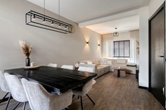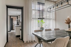 De doorzonwoonkamer biedt volop licht en ruimte. Of je nu een grote eettafel wilt neerzetten voor gezellige diners of een knusse zithoek creëert voor lange avonden, hier kan het allemaal. Het is een fijne plek waar je direct het gevoel van thuiskomen ervaart.
