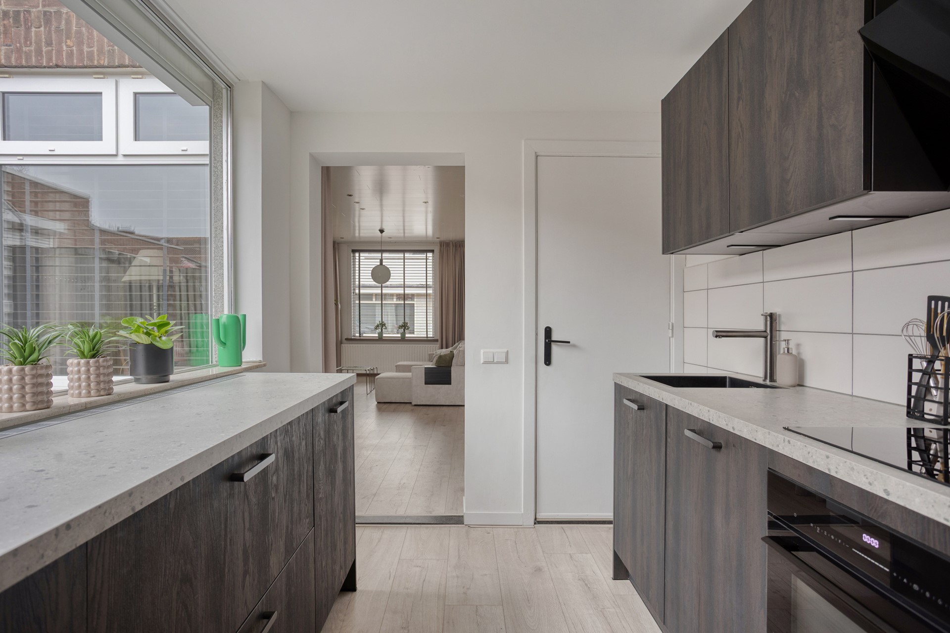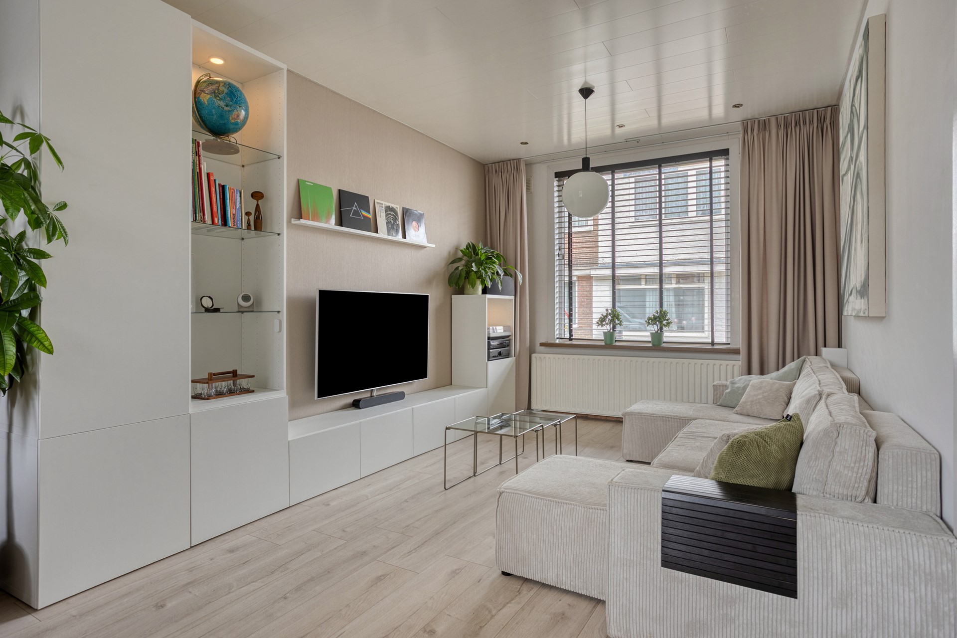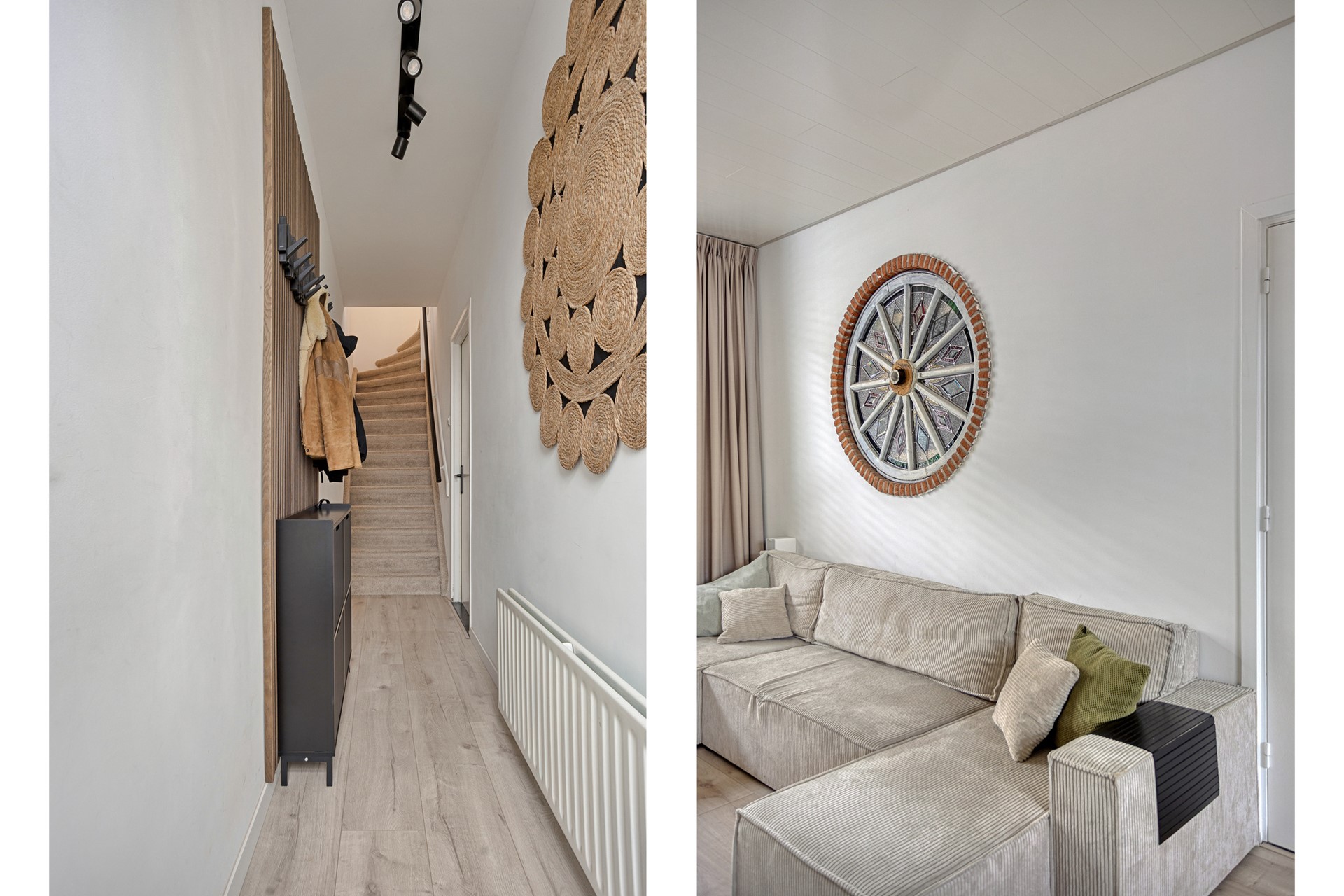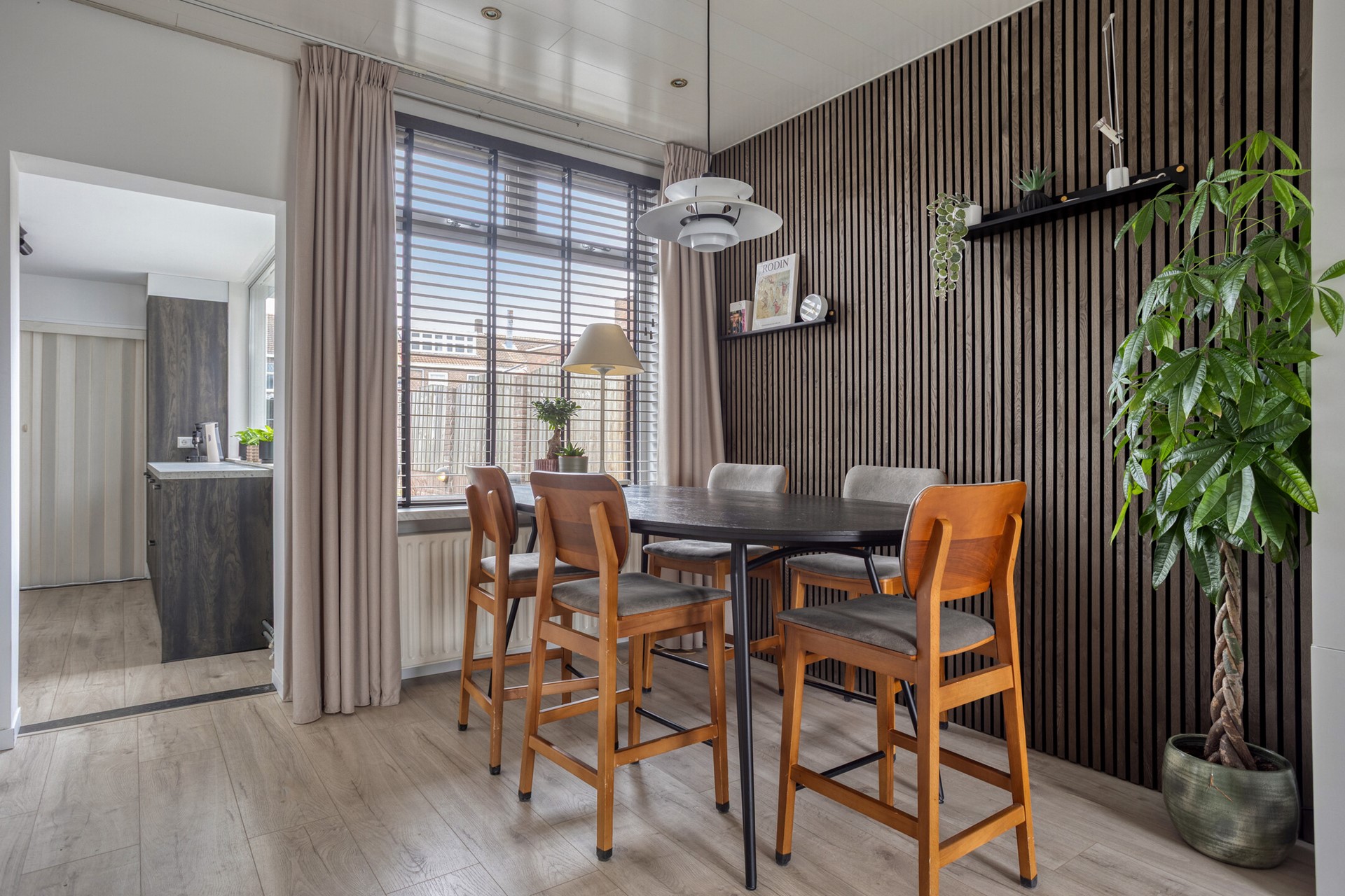 Rolluiken aan de ramen zorgen voor extra privacy en rust, terwijl de stijlvolle afwerking en slimme indeling van het huis een harmonieuze en warme sfeer creëren. Hier voel je je direct thuis.