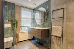 De woning beschikt over twee badkamers – ideaal voor gezinnen, logés of het creëren van een luxe privéverdieping. De hoofd-badkamer is tijdloos ingericht en straalt luxe uit: een dubbele wastafel, een modern toilet en een grote inloopdouche maken het een heerlijke plek om je dag te beginnen of af te sluiten. De tweede badkamer op de begane grond is volledig functioneel en biedt extra comfort en flexibiliteit in het dagelijks gebruik. Zo heb je alle mogelijkheden om het huis volledig aan te passen aan je woonwensen.