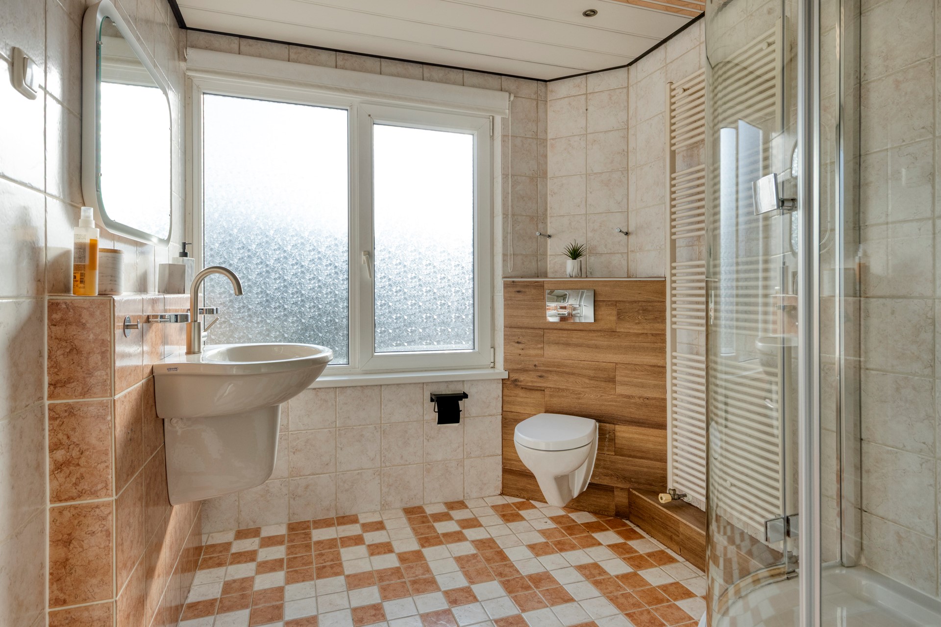 Op de eerste verdieping vindt u drie comfortabele slaapkamers, elk met een eigen karakter en prettige lichtinval. De badkamer, praktisch bereikbaar vanuit zowel de overloop als de hoofdslaapkamer, vormt een verzorgde en functionele ruimte met een rustige, tijdloze uitstraling. Dankzij de praktische indeling voelt deze ruimte extra comfortabel en prettig in dagelijks gebruik. U beschikt hier over een halfronde douchecabine met hardglazen wanden, die niet alleen praktisch is maar ook een moderne, strakke uitstraling geeft. Daarnaast is er een hangcloset en een wastafel met voldoende ruimte voor dagelijkse verzorging. Het kunststof plafond met ingebouwde verlichting zorgt voor een aangename, gelijkmatige lichtinval en maakt het geheel compleet.
