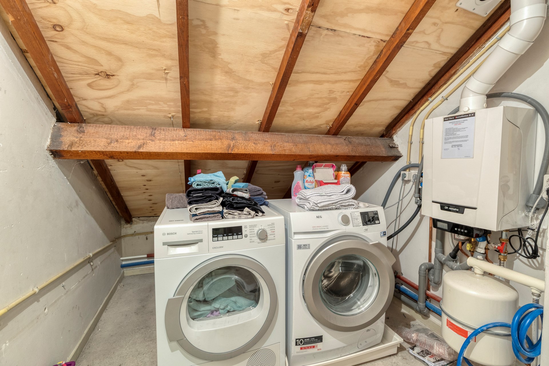 De tweede verdieping verrast opnieuw met een ruime vierde slaapkamer onder een geheel nieuw dak. Deze verdieping biedt niet alleen extra leefruimte, maar ook volop praktische bergruimte en een wasruimte — ideaal voor een groeiend gezin of een thuiswerkplek.
