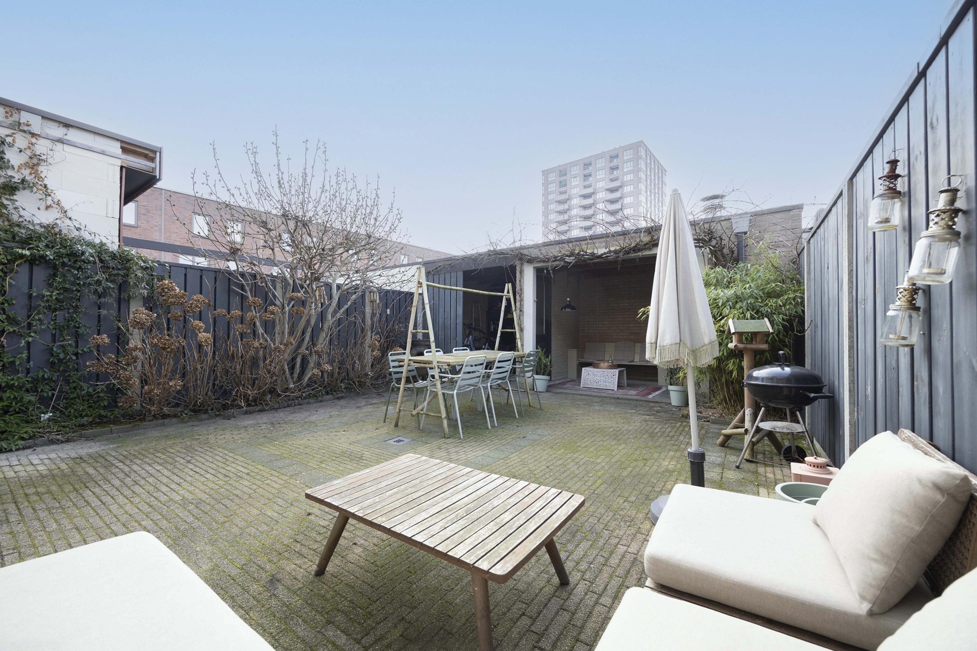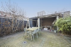 De zonnige achtertuin op het zuiden is een verlengstuk van het woonplezier. Onder de sfeervolle overkapping zie je jezelf al zitten tijdens lange zomeravonden, met een goed glas wijn of een koud biertje. De eigen pizzaoven maakt het plaatje compleet: een ware pizzeria in je eigen tuin. Daarnaast beschikt de tuin over een berging, volop privacy en precies de juiste balans tussen rust en levendigheid.