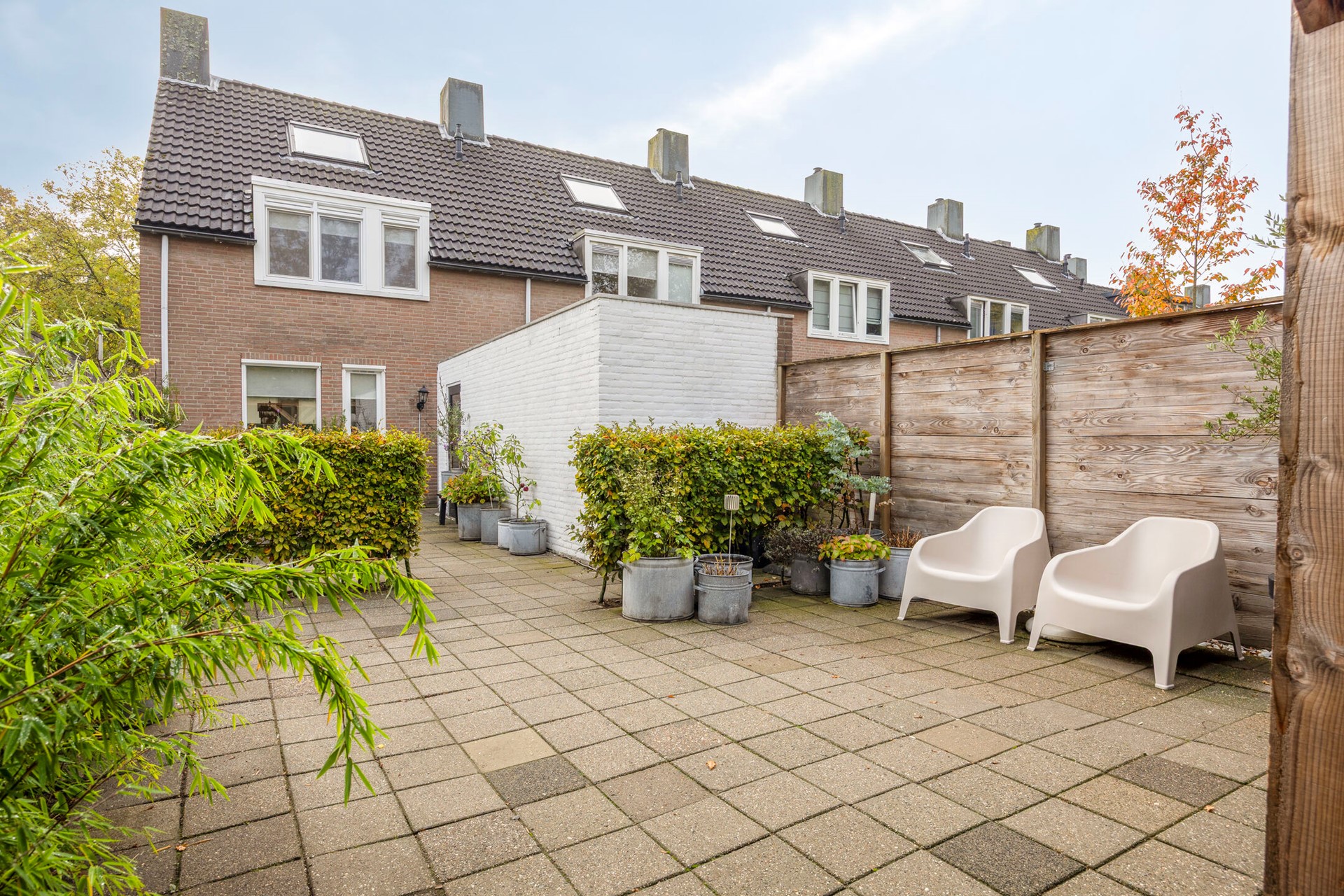 De achtertuin op het noordwesten biedt een fijne combinatie van zon en schaduw. Doordat de tuin grenst aan het Dongepad, heb je geen directe achterburen – wat zorgt voor een heerlijk gevoel van privacy.