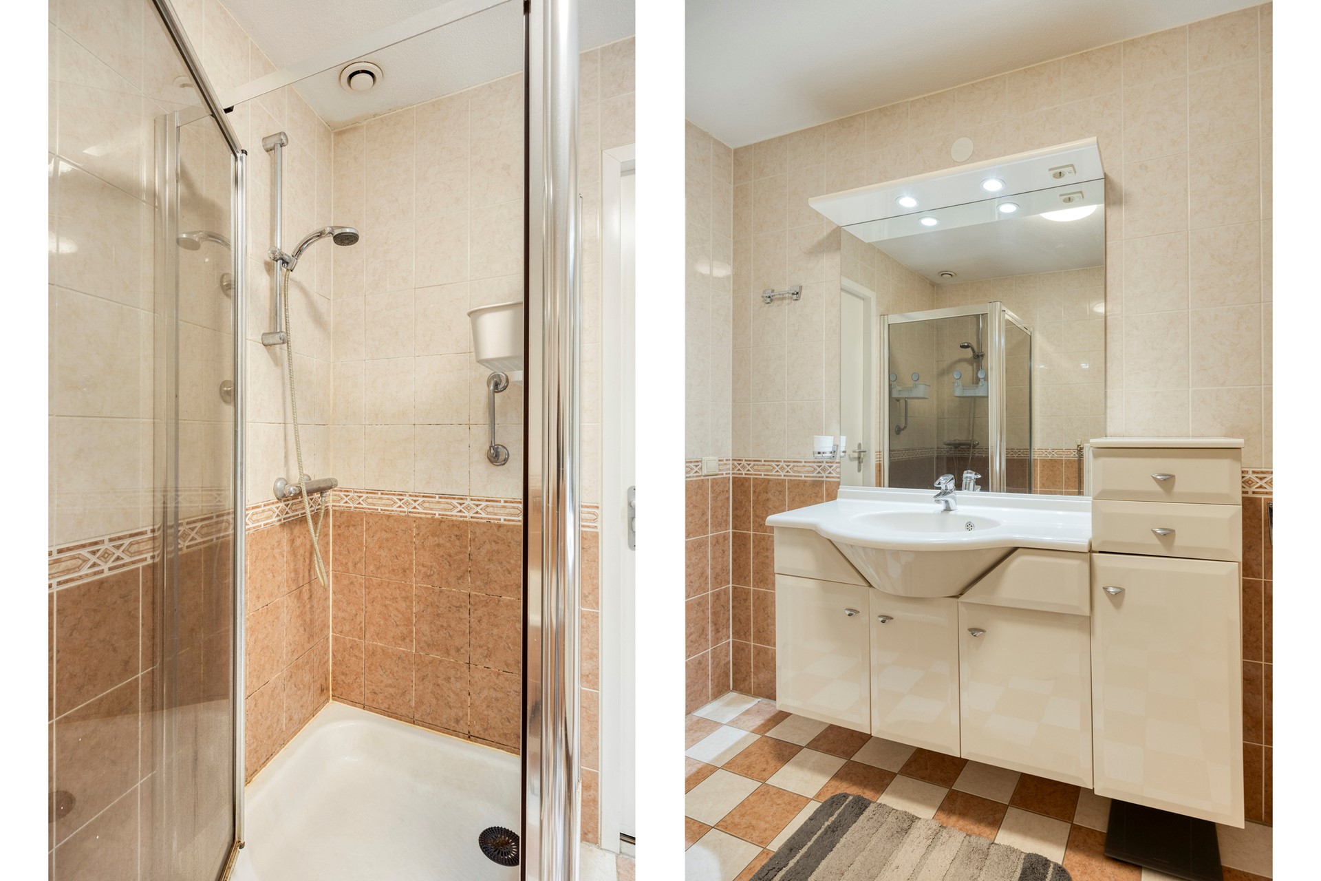 De compleet betegelde badkamer met ligbad en aparte douche is jouw persoonlijke wellnesshoekje. Zet een zacht muziekje op, laat het bad vollopen en kom volledig tot rust na een drukke dag.