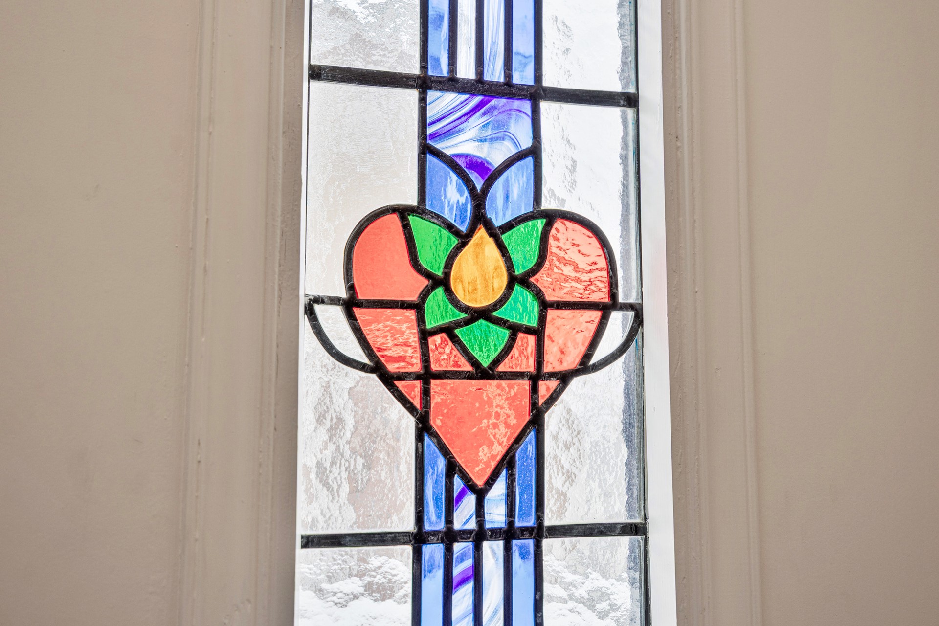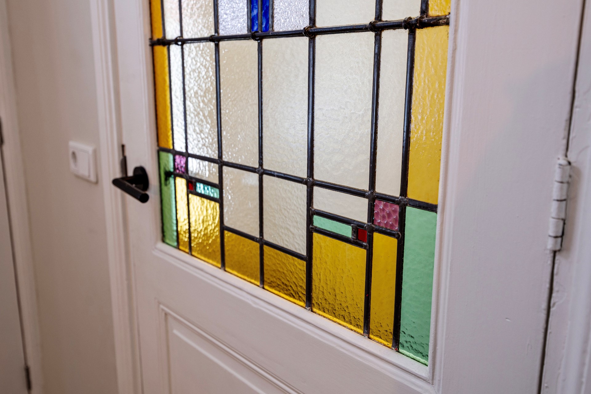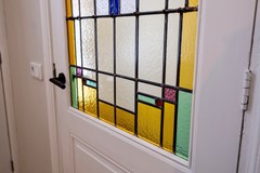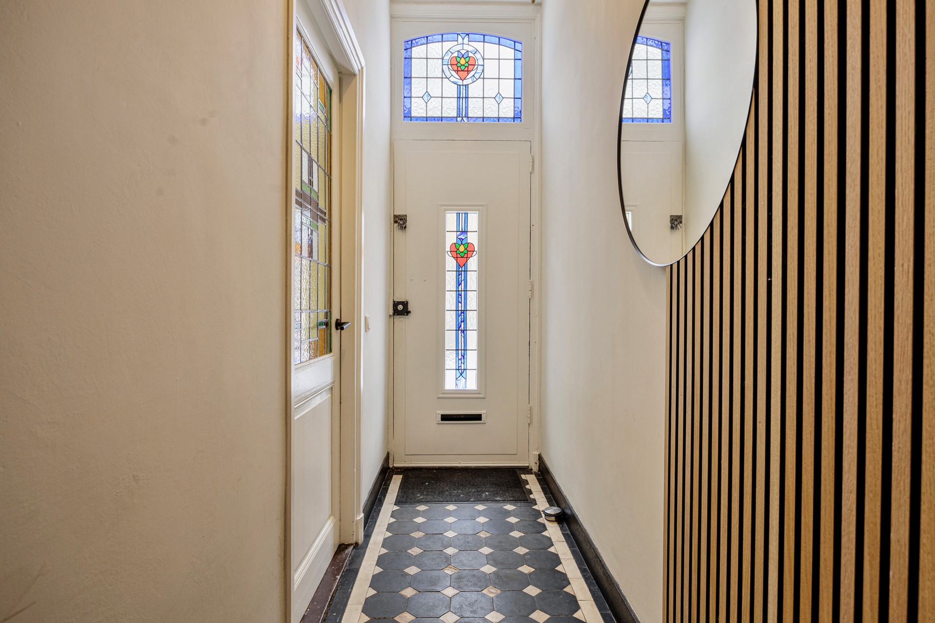 Deze charmante tussenwoning uit 1906 (compleet gerenoveerd in 2023) laat al bij aankomst zien wat je binnen mag verwachten. De authentieke voordeur met glas-in-loodraam en het sierlijk gebogen glas-in-loodraam erboven vormen een prachtig visitekaartje zeker in combinatie met de fraaie oude tegelvloer.