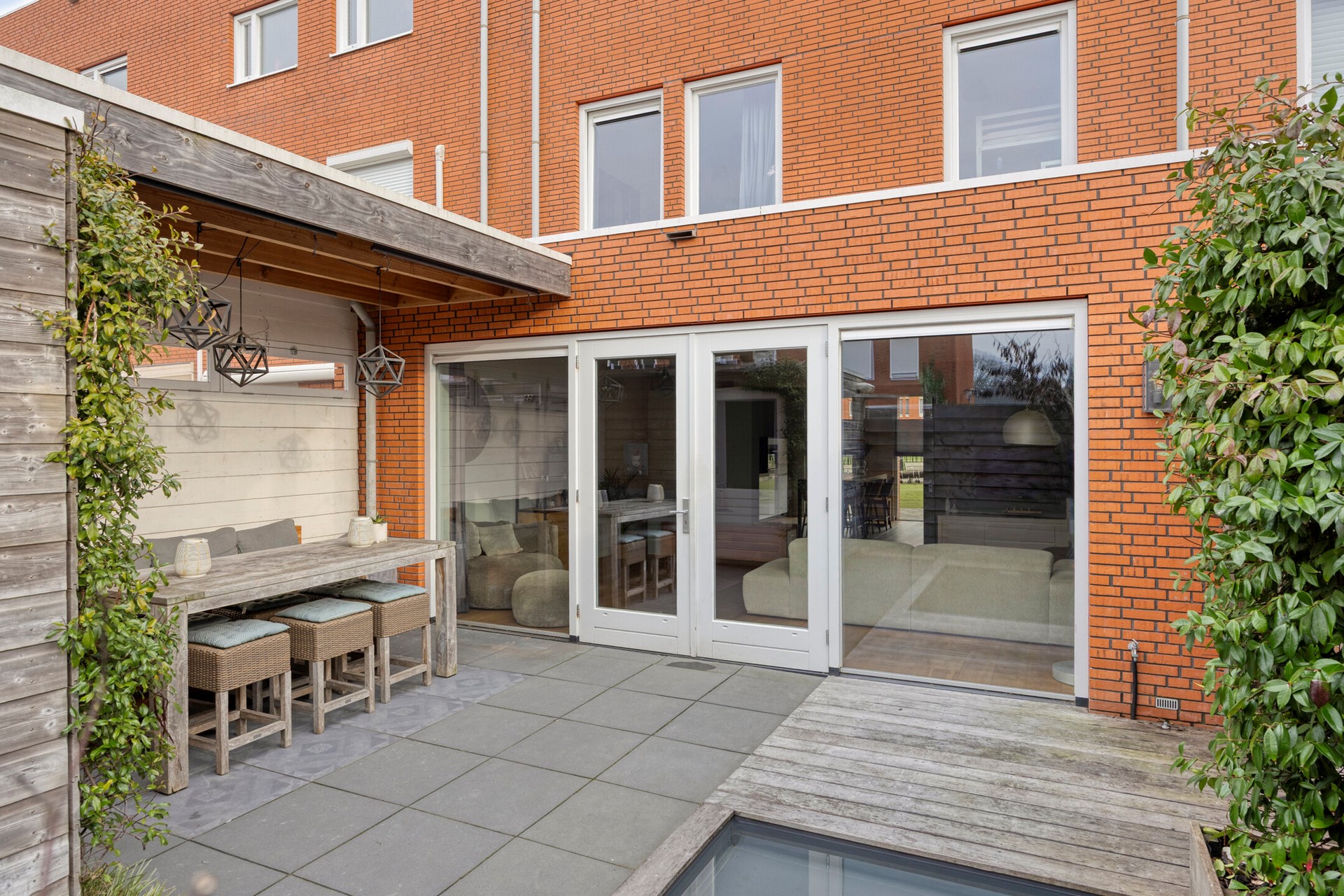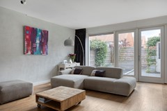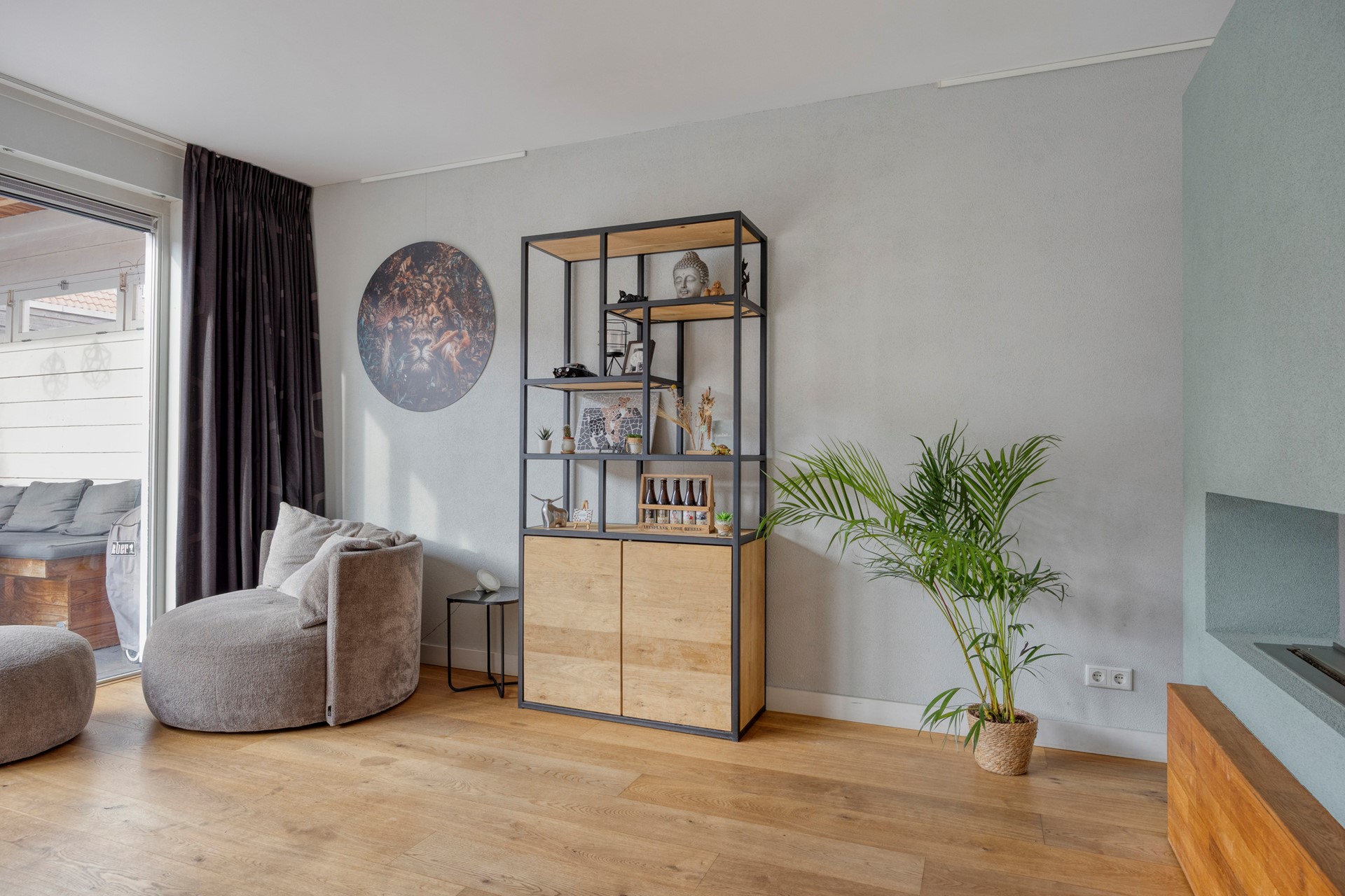 De woonkamer is ruim opgezet en baadt in het daglicht. De sfeervolle haard vormt het warme middelpunt van de ruimte en nodigt uit tot lange avonden met een goed glas wijn of een rustig boek. Deze haard wordt ter overname aangeboden en maakt geen onderdeel uit van de verkoop van de woning. Openslaande deuren verbinden binnen moeiteloos met buiten, waardoor de tuin een verlengstuk wordt van de leefruimte.