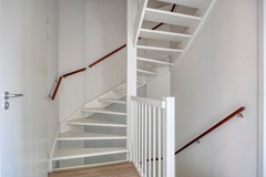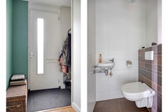 Zodra je de woning binnenstapt, voel je het: dit huis klopt. De begane grond is voorzien van een warme houten vloer met comfortabele vloerverwarming, wat direct zorgt voor een aangename, luxe sfeer. De entree is strak en verzorgd, met een volledig betegeld toilet, een praktische trapkast en een mooie doorgang naar de leefruimte.