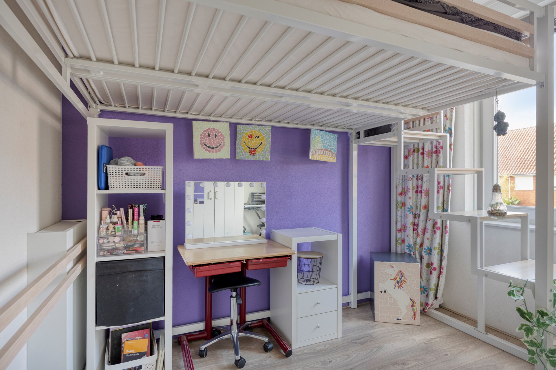 De tweede verdieping verrast met een volwaardige vierde slaapkamer, voorzien van een vaste kastenwand. De ruime overloop/voorzolder biedt niet alleen plaats aan wasmachine en droger, maar leent zich ook uitstekend voor het creëren van een thuiswerkplek of kantoor aan huis. Via de vide met vliering is er bovendien extra bergruimte – praktisch én slim ingedeeld.