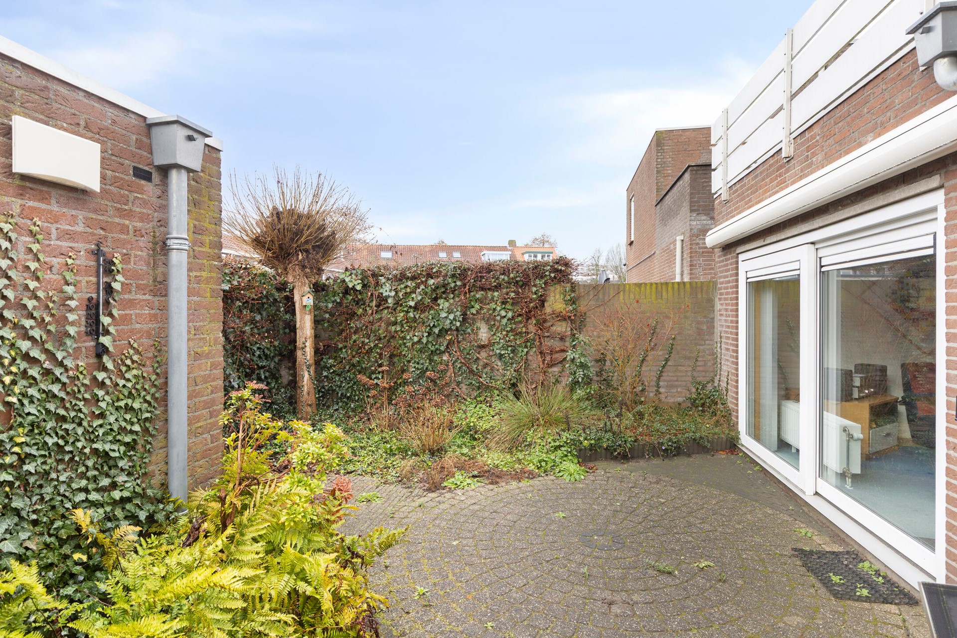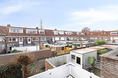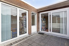 De onderhoudsvriendelijk aangelegde achtertuin is volledig bestraat en ligt op het zuidwesten – wat betekent: volop zonuren. Hier geniet je tot in de avond van het buitenleven. Via de zijpoort is de tuin gemakkelijk achterom bereikbaar. In de ruime berging plaats je fietsen en berg je tuinspullen netjes op. Een heerlijke plek om te ontspannen na een wandeling langs de haven of een avond in de stad.