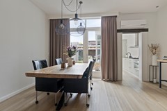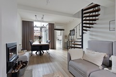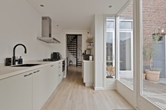De luxe keuken is een absolute blikvanger. Eigentijds, licht en doordacht tot in elk detail. De prachtige glazen pui in de zijgevel laat daglicht binnenstromen en biedt een uitzicht op de stadstuin dat nooit verveelt. Hier kook je niet alleen – je leeft er. Met een Quooker, combi-oven, koel- en vriescombinatie, vaatwasser, 5-pits gaskookplaat met wokbrander en een robuust, extra dik keramisch werkblad is dit een keuken die uitnodigt tot culinaire ontdekkingen. De open verbinding met de woonkamer maakt het dé perfecte plek voor lange etentjes met vrienden of een ontspannen zondagochtendkoffie met uitzicht op de tuin.