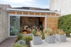 De tuin is een verborgen juweeltje: fraai aangelegd, verrassend diep en heerlijk zonnig. De ligging op het zuidwesten zorgt ervoor dat je de hele dag door kunt genieten van de zon, privacy en een fijne indeling met sierbestrating, groene borders en een houten overkapping. Onder deze overkapping geniet je zelfs tijdens een zomers buitje van de frisse lucht. Een plek waar kinderen kunnen spelen, vrienden kunnen aanschuiven en waar elke zomeravond eindigt met het gevoel dat je even helemaal weg bent – zonder de stad te verlaten.