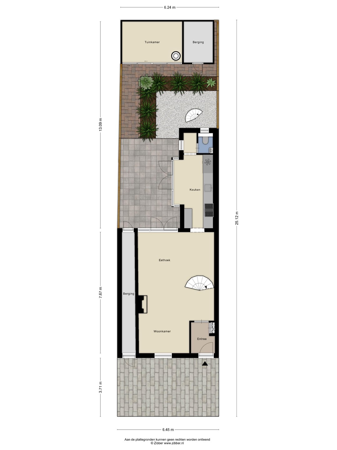 De tuin beschikt over een houten berging en een zij-ingang vanaf de straat, wat het dagelijks gebruik extra comfortabel maakt.