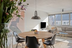 De woonkamer voelt licht, ruim en uitnodigend. Dankzij de vele ramen stroomt het daglicht rijkelijk naar binnen, waardoor de ruimte altijd levendig en open aanvoelt. De neutrale afwerking met een gloednieuwe houtlook PVC-vloer (juli 2025) en frisse gestuukte wanden maken het geheel af. De airco-installatie houdt het gehele appartement koel tijdens warme zomerdagen, terwijl de goede isolatie en het energielabel C ervoor zorgen dat de stookkosten beperkt blijven.