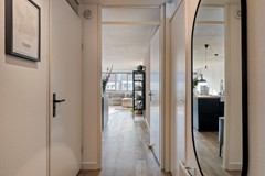 Het appartement bevindt zich op de eerste verdieping van een verzorgd kleinschalig appartementencomplex. In de centrale entree vind je de meterkast met opbergruimte en de gezamenlijke fietsenstalling. Er is zowel een lift als een trap aanwezig. Zodra je het appartement binnenstapt, voel je direct de warme, verzorgde sfeer die hier heerst. De hal is ruim, voorzien van een nieuw toilet (juli 2024) en geeft toegang tot de woonkamer en slaapkamer.