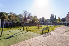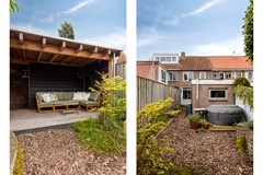 De diepe achtertuin op het oosten is een heerlijke plek waar je de dag begint met de eerste zonnestralen. Dankzij de verzorgde omheining en de praktische achterom is deze buitenruimte niet alleen mooi, maar ook bijzonder functioneel. Onder de overkapping zit je beschut en comfortabel, zelfs wanneer het weer even omslaat. Een plek waar binnen en buiten moeiteloos in elkaar overlopen.