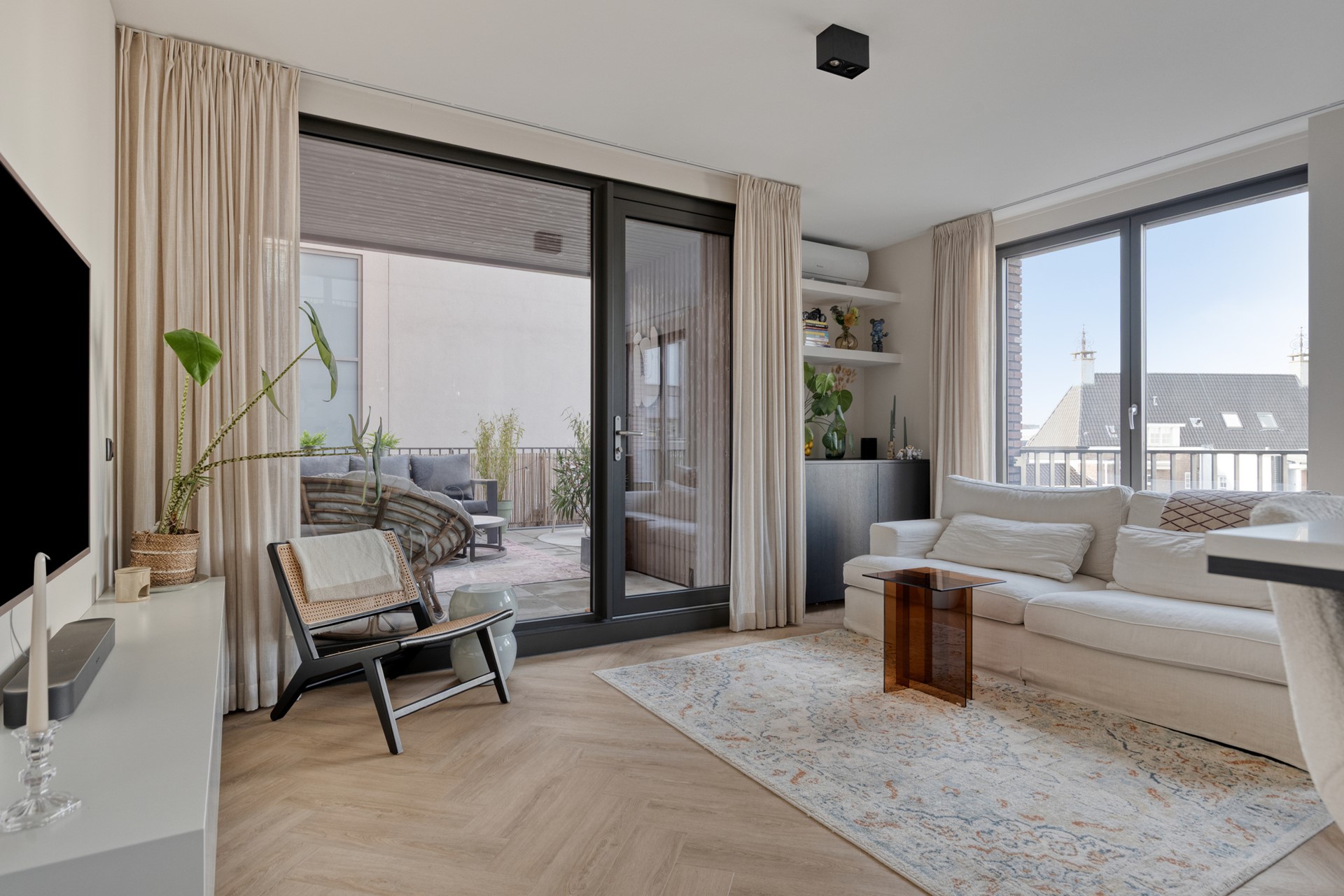 Zodra je binnenstapt, valt één ding direct op: het licht. De verdiepingshoge raampartijen laten het daglicht rijkelijk binnenstromen en betrekken het royale dakterras op natuurlijke wijze bij de leefruimte. Dit terras van circa 21 m² is een absolute zeldzaamheid in het centrum — een privé buitenruimte waar je in alle rust kunt genieten van de zon, een goed glas wijn of lange zomeravonden. Het buitenleven wordt hier moeiteloos onderdeel van het dagelijks wonen.