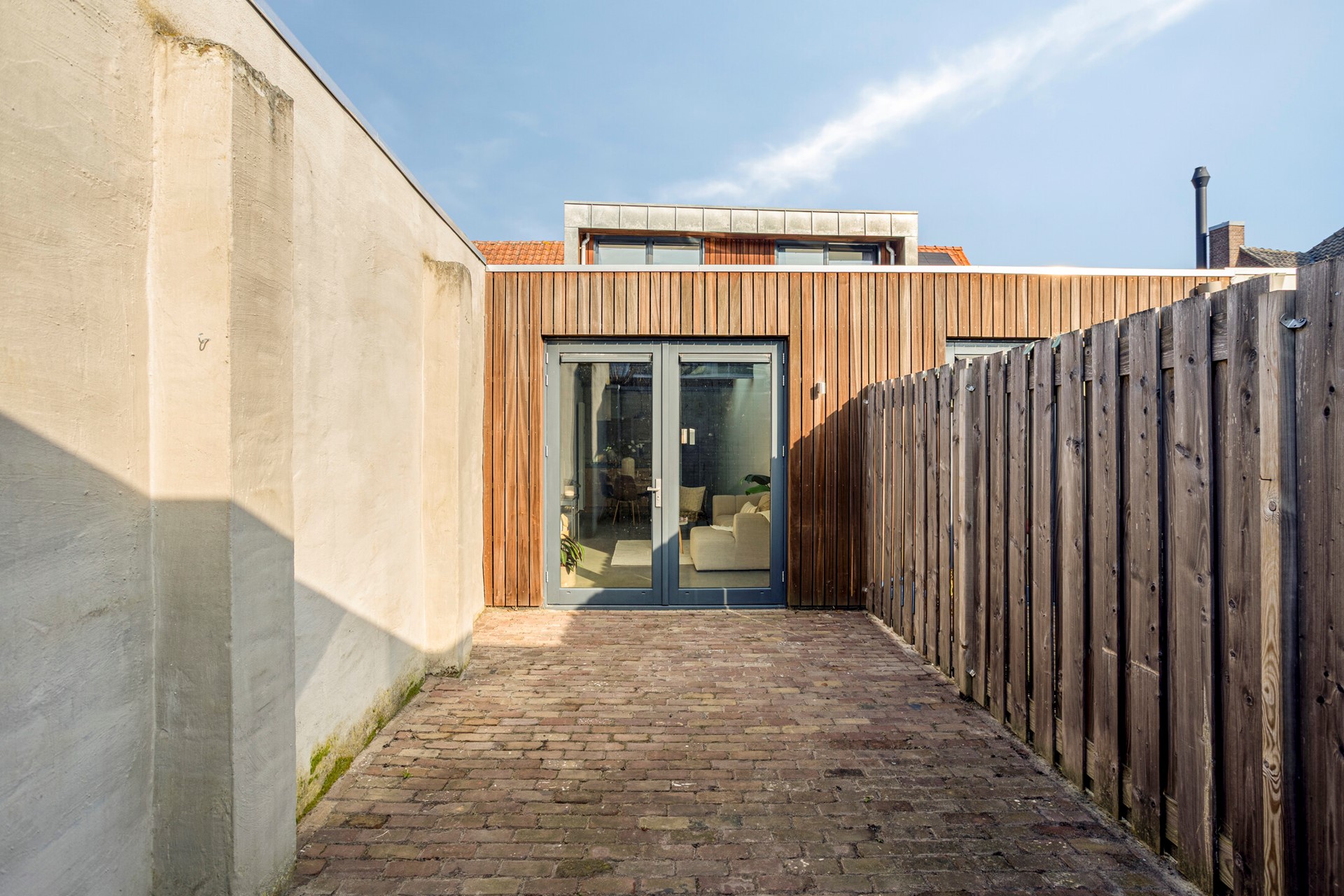 De achtertuin is gelegen op het zuiden — wat betekent: zon gegarandeerd. Een heerlijke plek om in de zomer te ontspannen met een kop koffie in de ochtend of een goed glas wijn in de avond. De tuin is onderhoudsvrij aangelegd met sierbestrating, waardoor je vooral hoeft te genieten in plaats van te werken. Met de juiste aankleding creëer je hier moeiteloos een knusse stadstuin waar het buitenleven centraal staat.