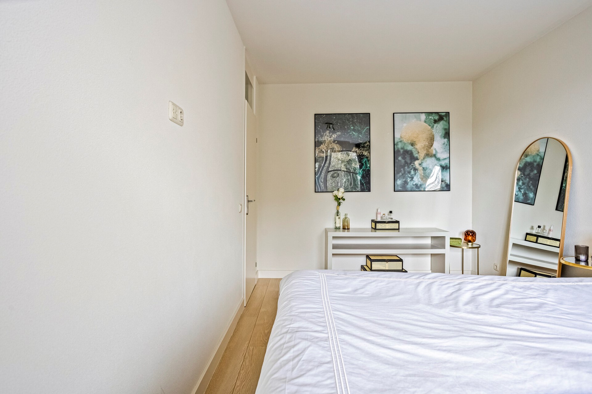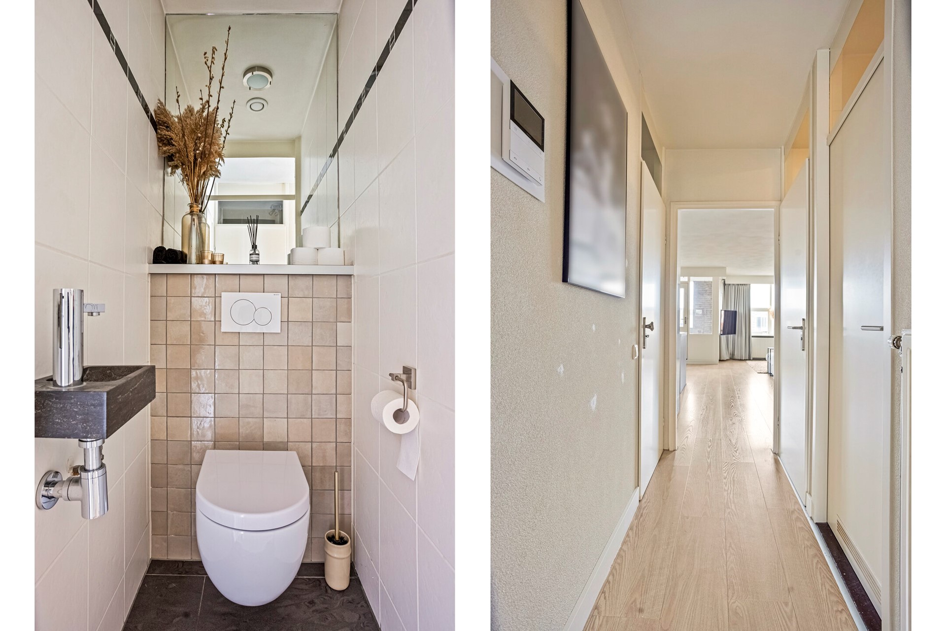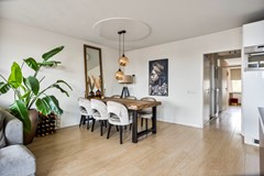 Zodra je het appartement binnenstapt, valt één ding meteen op: het licht. De woning voelt open, fris en uitnodigend. De ruime hal vormt het centrale punt van het appartement en geeft toegang tot het separate toilet, twee slaapkamers, de badkamer, de inpandige berging en natuurlijk de woonkamer. De gehele woning is strak afgewerkt met een doorlopende laminaatvloer die in alle kamers is doorgelegd. Dit zorgt voor rust, eenheid en een moderne uitstraling.