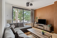 De woonkamer heeft een aangename indeling met uitzicht op de groene straat. Dankzij de mogelijkheid om een van de slaapkamers te betrekken bij de woonkamer, kun je hier eenvoudig een royale living creëren die uitnodigt tot gezellige avonden met vrienden of knusse filmavonden.
