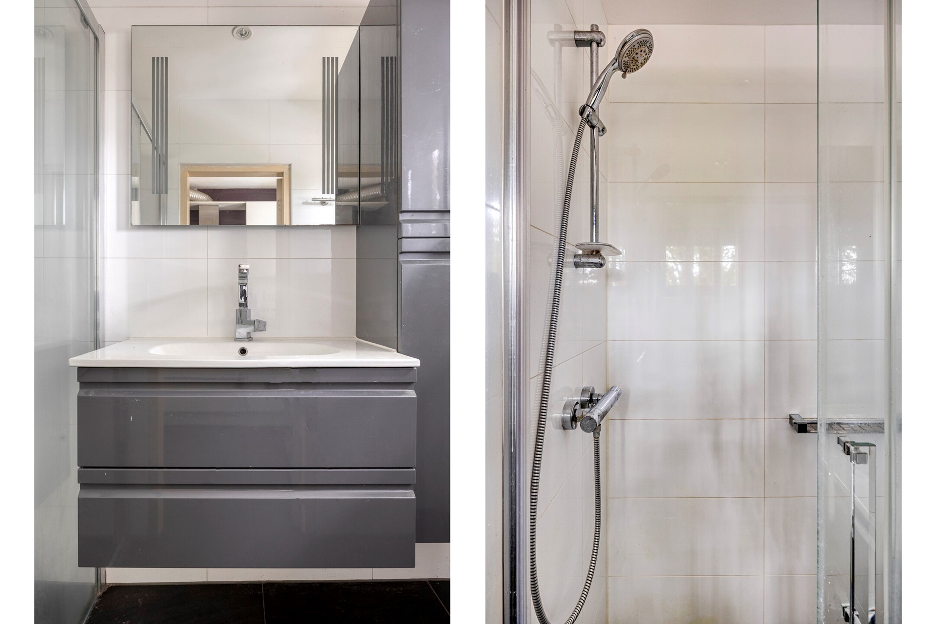 De slaapkamers zijn stuk voor stuk slim ingericht. Inbouwkasten zorgen voor rust en ruimte, terwijl de hoofdslaapkamer dankzij de extra wastafel net dat beetje extra gemak biedt. De badkamer, fris en modern sinds 2015, maakt het plaatje compleet.