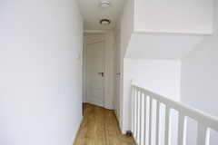 Op de eerste verdieping bevinden zich twee royale slaapkamers die rust en comfort ademen. De warme houtlook laminaatvloer loopt mooi door en versterkt het serene gevoel. Beide kamers zijn keurig afgewerkt en voorzien van een inbouwkast, waardoor de ruimtes strak en overzichtelijk blijven.