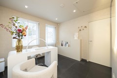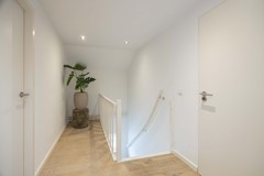 Op de eerste verdieping bevindt zich een stijlvolle wellness badkamer die rust en luxe ademt. De ruimte is royaal opgezet en afgewerkt met moderne grijze vloertegels met vloerverwarming, strak stucwerk en een tijdloos design dat jarenlang meegaat. Het brede wastafelmeubel met dubbele wastafel en royale spiegelwand zorgt niet alleen voor comfort, maar ook voor een hotelwaardige uitstraling. De zeer ruime, volledig betegelde inloopdouche met thermostaatkraan nodigt uit tot ontspannen momenten, terwijl het separate ligbad dé plek is om na een lange dag volledig tot rust te komen. Het separate toilet op deze verdieping is in dezelfde moderne stijl uitgevoerd en beschikt over een vrijhangend closet en eigentijdse afwerking.