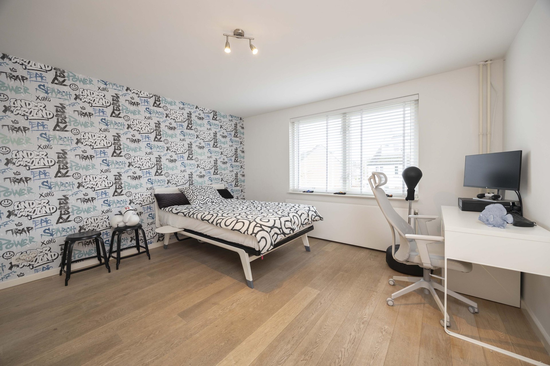 De extra speelkamer/kantoorruimte op de begane grond biedt volop mogelijkheden. Praktijk aan huis–kantoor–atelier? Dankzij de praktische indeling en separate toegang creëer je hier moeiteloos een professionele werkruimte, zonder in te leveren op privacy.